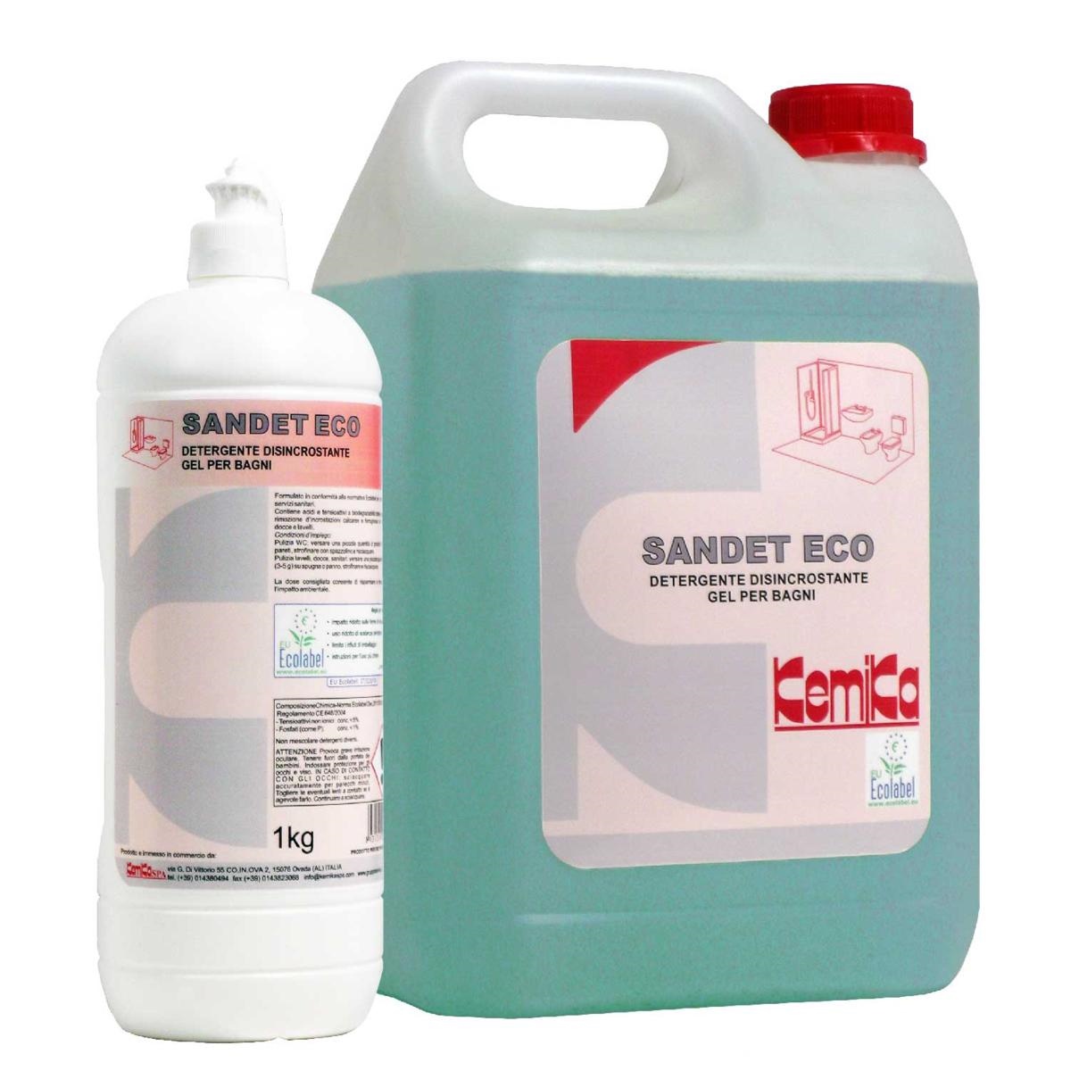 SANDET ECO e un detergente disincrostante gel formulato in conformita alla Normativa Ecolabel Decisione (UE) 2017/1217 e conforme alla Norma UNI EN ISO 14024 ]Etichettatura Ambientale di Tipo 1.